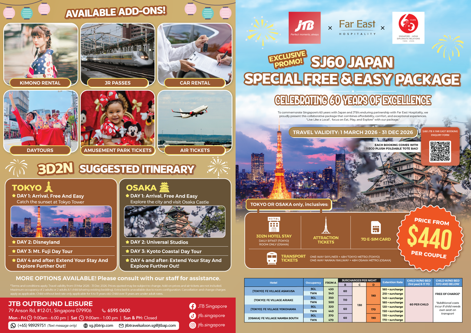 In celebration of SJ60 years of excellence, we are proud to present this collaborative Free & Easy package with Far East Hospitality.