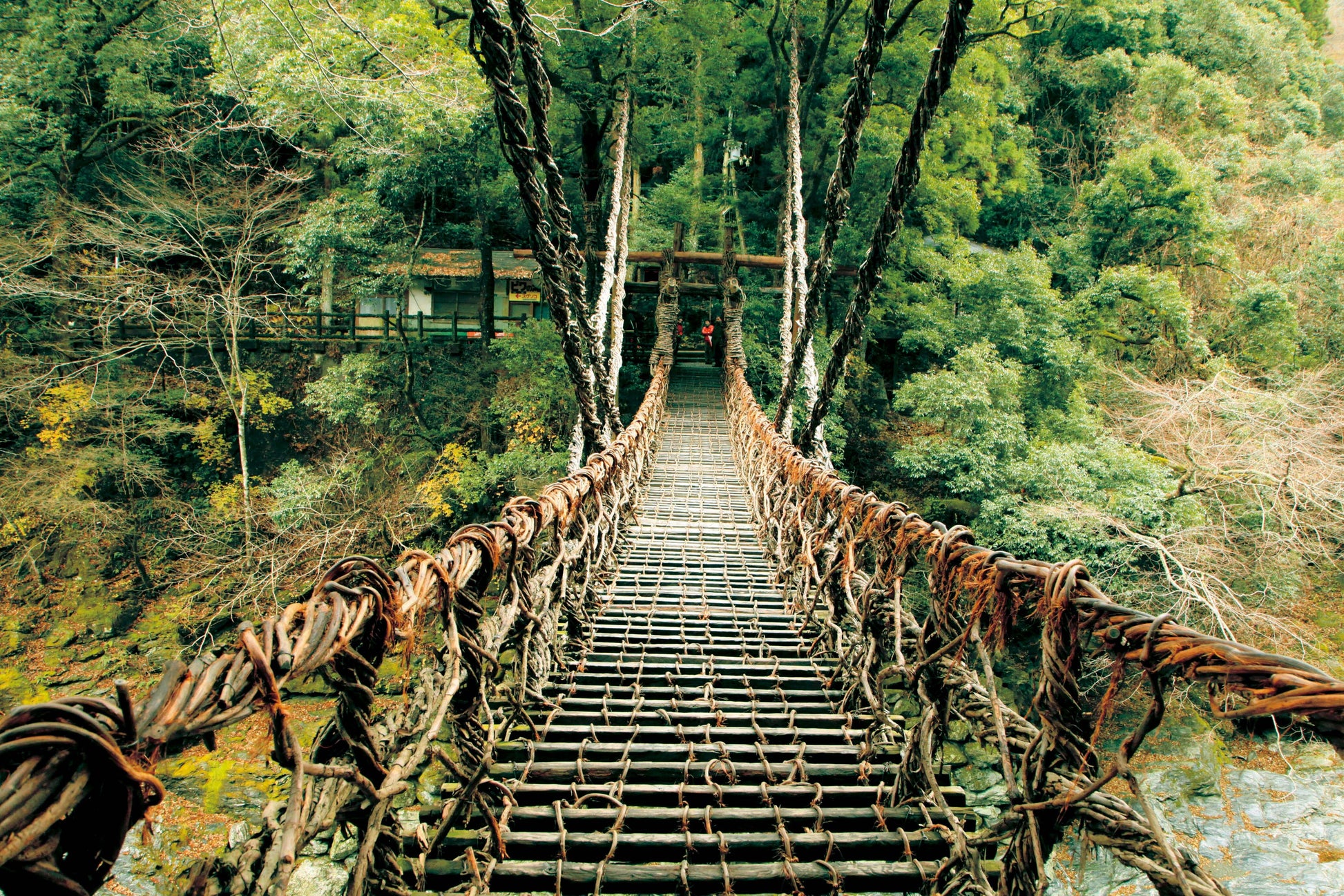 Begin your morning at Hirome Market (ひろめ市場), a vibrant food hall offering Kochi’s local delicacies. Next, enjoy lunch and participate in a hands-on Bonito Searing Experience, where you will learn the traditional method of preparing Kochi’s famous seared bonito. Afterwards, visit the historic Iya Valley Kazurabashi Bridge (祖谷のかずら橋) , a thrilling vine suspension bridge spanning a dramatic mountain gorge. Thereafter, embark on the serene Oboke Gorge Cruise (大歩危峡観光遊覧船), where emerald waters and towering cliffs are beautifully framed by autumn foliage. Finally, transfer to Kotohira for hotel check-in and dinner.
